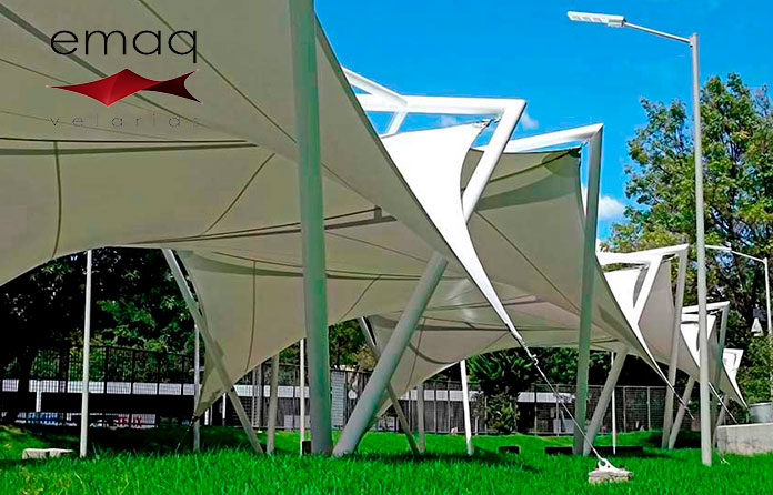 Velarias Instalación, Modelos, Tipos, Proyectos Industriales, Privados y Comerciales, Precios en Tenso Estructuras, Techos tensados y Lonarias. EMAQ Velarias es una empresa dedicada al diseño, producción e instalación de Arquitectura Textil como: Velarias Querétaro, Palilleria, Toldos y Techumbres Industriales. Establecida en la Cd. De Querétaro,...